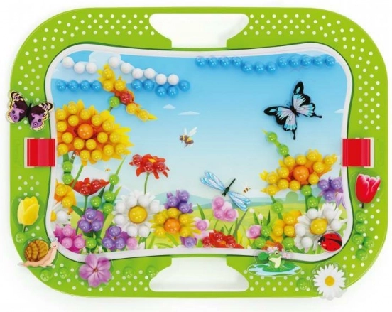 Maak met pinnetjes je eigen bloeiende tuin! Klassieke Quercetti-pinnetjes in een kleurrijke uitvoering die de wereld van de natuur verbeeldt. De set bevat pinnetjes in verschillende kleuren en diameters waarmee je diverse landschapsscènes kunt creëren, en veel stickers en figuren van vlinders, kikkers, lieveheersbeestjes en andere wezens om je natuurlijke wereld tot leven te brengen. Inhoud van de verpakking: 1 geperforeerde onderplaat 28 × 20 cm, 2 voorbeeldafbeeldingen, 300 pinnetjes in 6 verschillende kleuren, 16 figuren, 1 voet met standaard, 1 houten prikpen. Belangrijkste kenmerken: ontwikkelt fijne motoriek, creativiteit en fantasie; bevat 316 knoppen; voor kinderen vanaf 3 jaar.