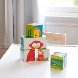 Deze blokken zijn gemaakt van duurzaam verkregen en gerecycled FSC® papier, wat bijdraagt aan milieubescherming. Kinderen kunnen leren dieren en kleuren te herkennen terwijl ze hun motorische vaardigheden oefenen.