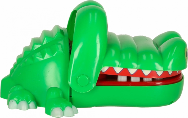 Dit populaire krokodilspel heeft 13 tandjes in de bek die je om de beurt kunt indrukken. Er is altijd maar één “zere” tand, die willekeurig wordt gekozen bij elke opening van de bek – daardoor blijft het spel onvoorspelbaar en altijd leuk. De tanden zijn niet scherp en het dichtklappen is zacht, zodat spelen veilig is, ook voor jongere kinderen.