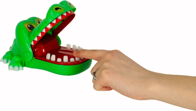 Je kunt solo spelen – probeer alle tandjes in te drukken behalve de pijnlijke – of in een groep, waarbij spelers om de beurt één tand indrukken. Wie door de krokodil wordt “gebeten”, ligt eruit; de winnaar is de laatste speler die overblijft.