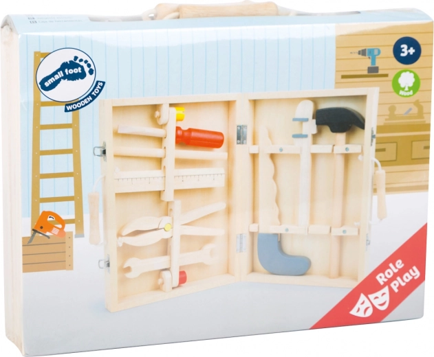 Geef kinderen een authentieke ervaring met gereedschap met het Small Foot Maik koffertje. Alles is overzichtelijk opgeborgen in een stevige houten koffer met touwhandvatten. Hamer, zaag en pijptang zijn tegen bewegen beveiligd, andere stukken worden geplaatst in uitklapbare houders die eenvoudig kunnen worden verwijderd met behulp van grote houten schroeven.