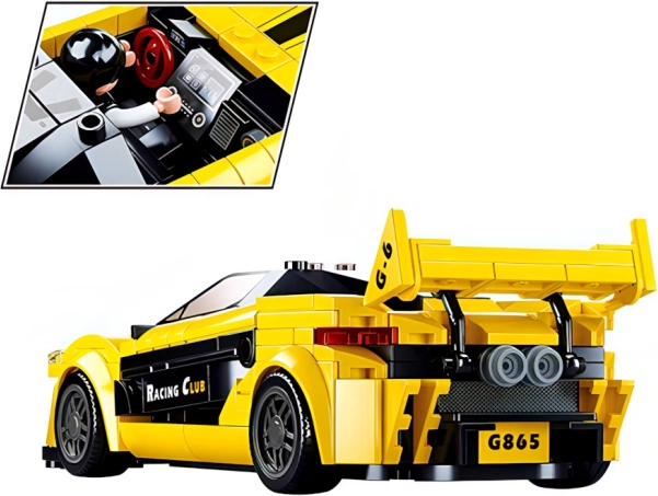 De gele Engelse sportwagen uit de SLUBAN ModelBricks-serie zal alle fans van snelle auto’s blij maken. Dankzij de nauwkeurig vormgegeven carrosserie, de achterspoiler en de sportieve “Racing Club”-stijl krijg je een model dat er geweldig uitziet én fantastisch speelplezier biedt. De onderdelen van duurzaam ABS-kunststof klikken stevig vast en zijn volledig compatibel met onderdelen van andere bekende merken.
