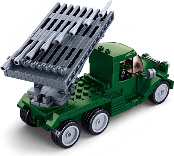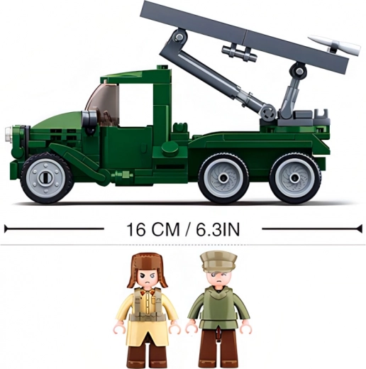 Bouw de legendarische Russische raketwerper Katjoesja uit de Slag om Boedapest-editie van het merk Sluban. Deze bouwset bevat 201 onderdelen, 2 minifiguren en een gemiddelde moeilijkheidsgraad voor een geweldige uitdaging. Gemaakt van duurzame en veilige ABS-kunststof, compatibel met LEGO, COBI en Mega Bloks en ondersteunt creatief en realistisch spel dankzij draaibare en kantelbare delen van de figuren.