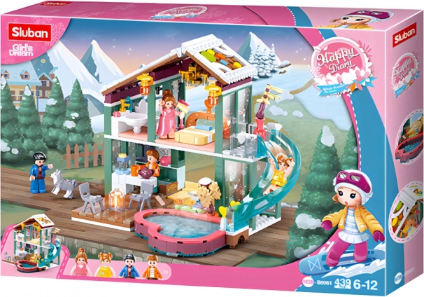 Ontdek de magie van winterpret met de bouwset SLUBAN Happy Diary – winterchalet. Een kleurrijke chalet met twee verdiepingen, 439 onderdelen en 4 minifiguren zorgt voor uren creatief speelplezier. De set is gemaakt van hoogwaardig en duurzaam ABS-kunststof, biedt een gemiddelde moeilijkheidsgraad en is compatibel met LEGO, Cobi en Mega Bloks.