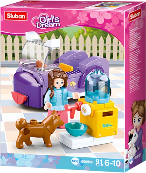 Bouw een stijlvol autootje en een voerbak voor hondjes en ga op avontuur! De Sluban Girls Dream bouwset stimuleert creativiteit, fijne motoriek en verbeeldingskracht. Dankzij de innovatieve minifiguren met draaibare en kantelbare delen wordt het spel nog realistischer.