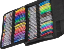 De grote set gelpennen biedt eindeloze creatieve mogelijkheden. Dankzij de levendige en kleurechte tinten zijn je notities en illustraties altijd opvallend en strak. Het overzichtelijke textielen ritsetui houdt alles netjes bij elkaar thuis, op school en onderweg.