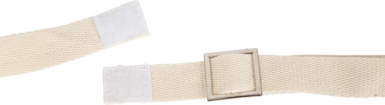De katoenen riem met metalen gesp is eenvoudig aan te passen aan de lengte van het kind – zo kan de drum kleine muzikanten bij elk optreden vergezellen.