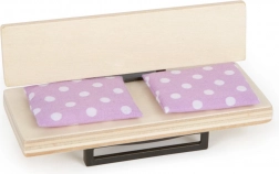 Poppenhuis, 8 stuks meubilair, textiele accessoires (beddengoed, kussens)