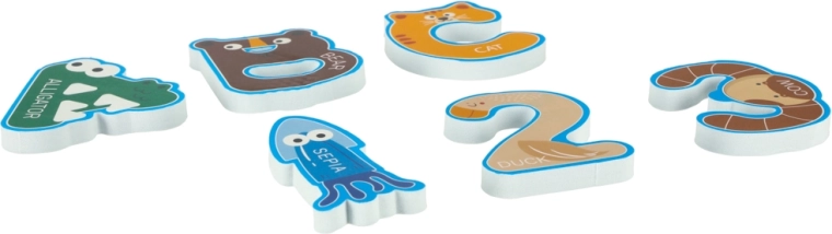 Verander het badmoment in leuk leren met een foamset van alfabet en cijfers met dieren. De onderdelen hechten aan bad en tegels na het natmaken, drijven op het water, drogen snel en stimuleren fijne motoriek, logisch denken en herkennen van letters en cijfers. Inclusief netje met zuignappen voor eenvoudig opbergen.
