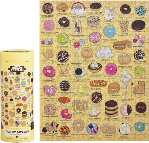 Geweldig cadeau voor elke donutliefhebber: een puzzel met 1000 stukjes die 55 heerlijke soorten toont, van Boston Cream tot Vanilla Sprinkle. Maak je eigen kunstwerk voor het interieur.