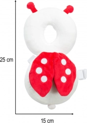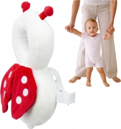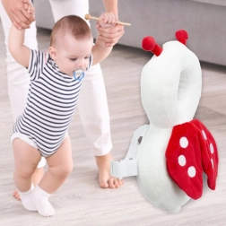 Het ronde kussen achter het hoofd dempt valpartijen op de rug en beschermt de gevoelige nekregio tijdens het leren lopen.