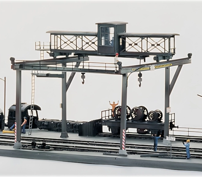 De PIKO-portaalkraan voegt een opvallend industrieel element toe aan uw modelbaan. Dankzij de gevarieerde constructie met talrijke fijne details is hij geschikt voor veeleisende modelbouwers die authentieke kleurgeving met patina waarderen en een groot platform willen voor het vormgeven van de omgeving. Perfect voor scènes van een locomotiefsloperij, overslagterrein of andere industriële gebieden.