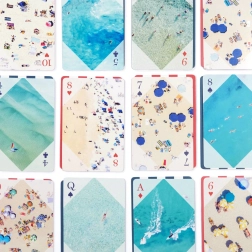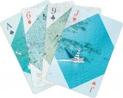 Elke kaart is versierd met unieke luchtfoto's van stranden, die uw kaartspel uitzonderlijke esthetische waarde geven.