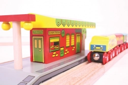 Breid je houten treinbaan uit met een stijlvol landelijk station dat de verbeelding, fijne motoriek en coördinatie stimuleert. Dankzij de universele compatibiliteit past het eenvoudig in elke opstelling en brengt het meer realisme en plezier in het spel.