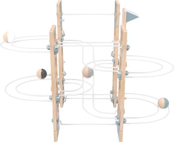 Deze prachtige modulaire knikkerbaan biedt eindeloze uren plezier en educatie. Dankzij het unieke ontwerp kan het eenvoudig worden aangepast en op elk gewenst moment worden uitgebreid. De speeltuig bevat hindernissen zoals stoppers en zacht klingelende belletjes die een extra dimensie aan het spel geven.