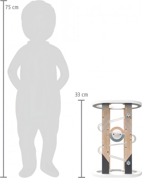 Draai de baan om zoals een zandloper en beleef eindeloos rijplezier! Laat kinderen de fascinerende werking van magnetisme ontdekken, die voorkomt dat de onrustige schijf eruit valt! De constructie van het speelgoed maakt gebruik van metalen en kunststof verbindingsstukken, waarmee de baan indien nodig eenvoudig kan worden gemonteerd, gedemonteerd en opgeborgen. Dankzij de robuuste basiselementen van duurzaam multiplex is het speelgoed stevig, stabiel en bestand tegen slijtage. Met zijn Scandinavische en natuurlijke tinten vult het de kinderkamer stijlvol aan. Geleverd met een gedetailleerde montagehandleiding. Belangrijkste kenmerken: baan met schijf, eenvoudig te monteren en te demonteren, robuuste en duurzame houten uitvoering