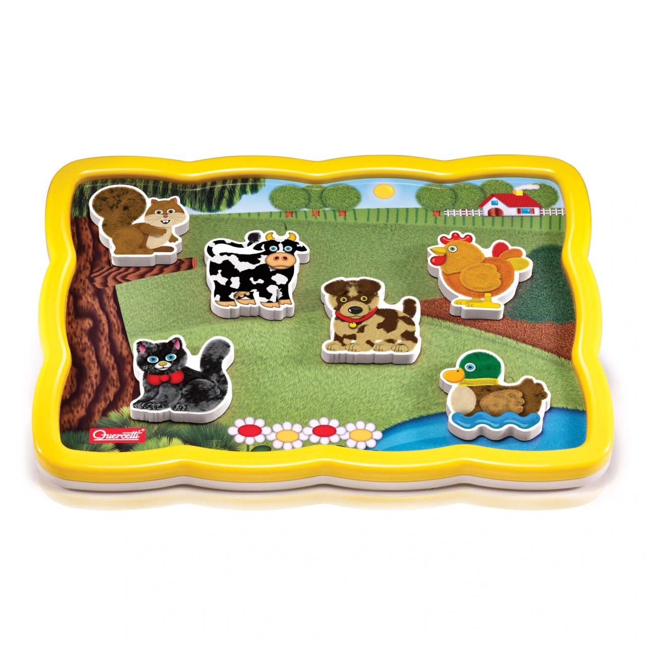 De Quercetti Magnetische Inlegpuzzel Boerderij is een geweldige speelgoedset voor jonge kinderen. Aan één kant van het bord kunnen kinderen magneten in de voorbereide openingen plaatsen, wat helpt bij de ontwikkeling van het herkennen van vormen en kleuren. Dankzij de magneten hechten de afbeeldingsstukjes gemakkelijk en kunnen ze praktisch worden opgeborgen voor later spelen.