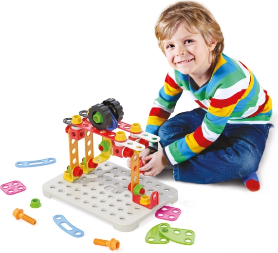 Vrolijke kleuren motiveren tot creëren en ondersteunen de fijne motoriek, logisch denken en technisch inzicht bij kinderen vanaf 3 jaar.