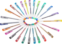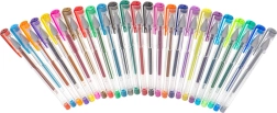 Deze veelzijdige set gelpennen is ideaal voor kinderen, studenten en volwassenen. Bevat 25 zorgvuldig geselecteerde stuks: 12 glinsterende voor opvallende decoraties, 7 metallic voor stijlvolle accenten, 3 fluorescerende voor krachtige markeringen en 3 klassieke kleuren (zwart, blauw, rood) voor dagelijks schrijven. Het transparante lichaam maakt het eenvoudig om het inktniveau te controleren en de fijne punt zorgt voor precieze lijnen.