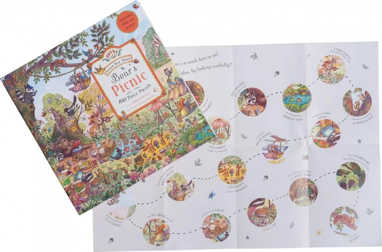 Ontdek de magie van de natuur met deze prachtige Berenpicknick puzzel. Kinderen en volwassenen zullen genieten van het leggen van dit puzzel dat natuur geïnspireerde kleuren en details tot leven brengt.