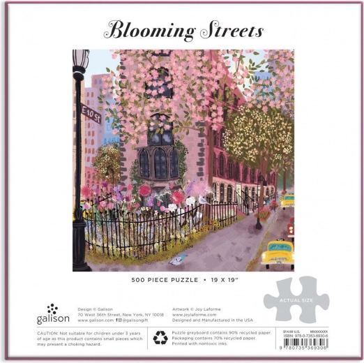 Ontdek de charme van een bloemrijke straat in NYC in een prachtige puzzel van 500 stukjes. Illustratie van Joy Laforme, gemaakt in de VS, verpakt in een stevige doos met matte afwerking – ideaal als cadeau. De stukjes passen precies in elkaar en het leggen bevordert zowel logisch denken als fijne motoriek.