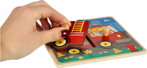 Houten puzzel met brandweerwagenmotief is ideaal voor jonge kinderen die coördinatie en logisch denken willen leren. Dit kleurrijke en leuke product ondersteunt de ontwikkeling van de fijne motoriek.