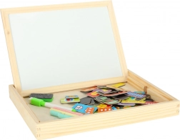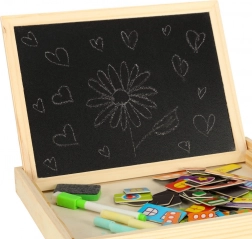 Ontdek het compacte houten bord dat kinderen vermaakt en tegelijk de verbeelding stimuleert. Dankzij het stevige frame van licht, natuurlijk hout en de praktische afmetingen (30 × 23 × 3 cm) is het geschikt voor thuis en onderweg.
