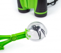 De Bigjigs Toys set prikkelt de nieuwsgierigheid van kinderen en nodigt hen uit om de natuur te ontdekken. Alles wat kleine natuuronderzoekers nodig hebben, vinden ze op één plek: een vangnet, vangpincet, een vangpotje, een loep en een verrekijker om omgeving en dieren te observeren. De heldergroene uitvoering spreekt kinderen aan en valt in de natuur niet storend op.