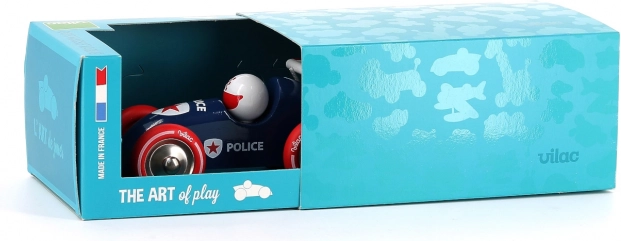 Vilac trek-politie-raceauto is een originele speelgoedauto die kinderen zal verrassen met zijn unieke design en hoogwaardige afwerking. Dankzij het meegeleverde koord kan hij hun constante metgezel zijn tijdens ritjes door de kamer of het huis.
