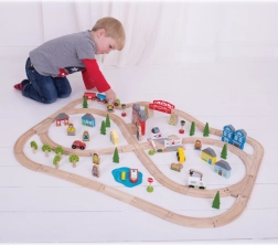 BIGJIGS RAIL rails en accessoires sluit je eenvoudig aan op de meeste houten treinbanen op de markt – breid je stad en dorp onbeperkt uit.