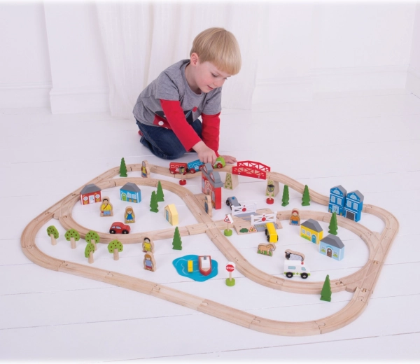 Houten treinbaan stad en dorp BIGJIGS RAIL, 91 delen