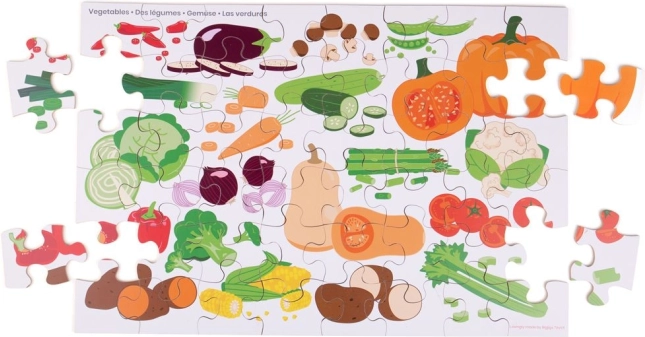 Deze puzzel bevat verschillende soorten groenten zoals pompoenen, paprika's en wortelen en leert kinderen over voeding en een gezonde levensstijl.