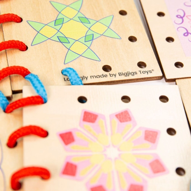 Creatieve houten rijgplaatjes van het merk BIGJIGS TOYS ontwikkelen de fijne motoriek, oog-handcoördinatie en geduld. Kleurrijke patronen en meerdere veters in verschillende kleuren motiveren kinderen om te creëren en vaardigheden te oefenen. De veilige uitvoering en hoogwaardige materialen zorgen voor een lange levensduur en veel speelplezier.
