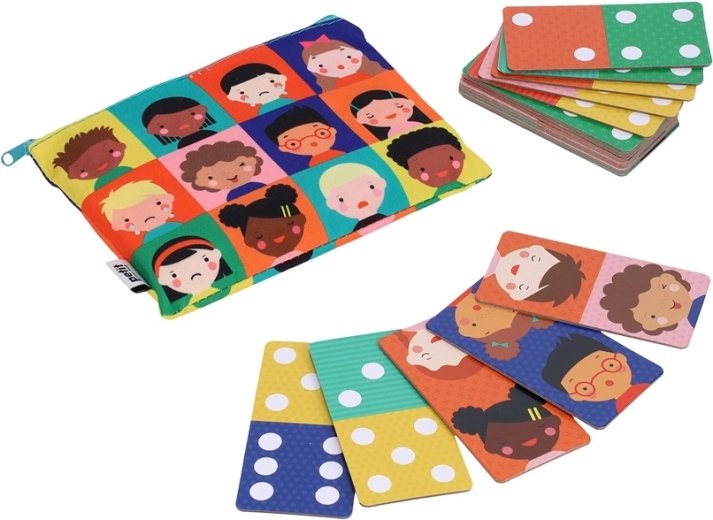 Een leuke en educatieve game voor kleuters: 2-in-1 domino met cijfers en gezichtsuitdrukkingen. Bevat 28 dubbelzijdige kaartjes van 80% gerecycled papier, bedrukt met niet-giftige plantaardige inkten. De praktische zip-opbergzak maakt opbergen en meenemen makkelijk – ideaal voor thuis en onderweg.