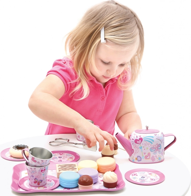 Rollenspel als gastheer ontwikkelt sociale en communicatieve vaardigheden en leert kinderen delen en plannen. Vrolijke kleuren en subtiele hartjes- en bloemmotieven zorgen ervoor dat zowel meisjes als jongens dol zullen zijn op deze set. Ideaal voor de speelhoek thuis en voor kinderfeestjes.