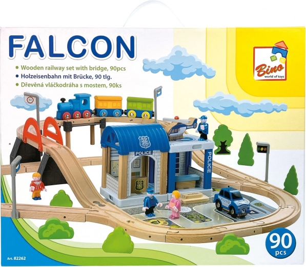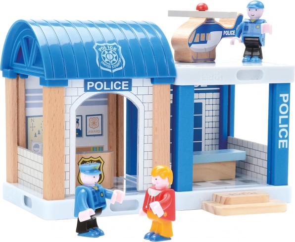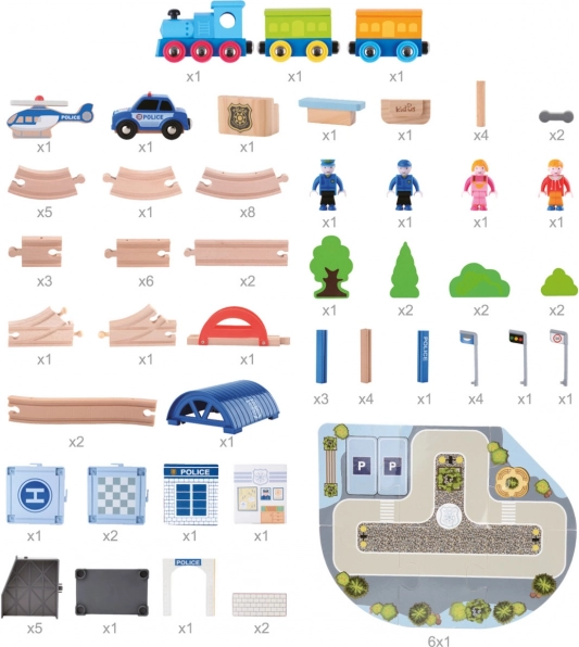 Deze gedetailleerd uitgewerkte houten treinbaan is ideaal voor jonge ingenieurs die van treinen en politieavonturen houden. De set bevat een baan met brug, een aantrekkelijk politiebureau en extra accessoires, waaronder een auto en een helikopter.