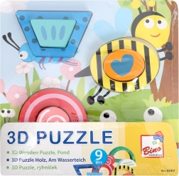 De houten, driedimensionale inlegpuzzel met vrolijke, kleurrijke vijvermotive is ideaal voor kinderen vanaf 3 jaar. De stukjes worden in de juiste volgorde in de stevige basis geplaatst, wat het begrip van sequentie en de ontwikkeling van coördinatievaardigheden ondersteunt. De hoogwaardige afwerking van massief hout en dik multiplex maakt dit speelgoed tot een duurzame partner voor dagelijks spelen.