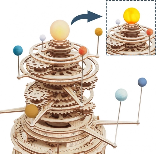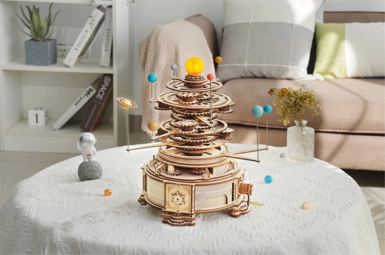 - Houten mechanisch model van het zonnestelsel (orrery) – 3D-puzzel