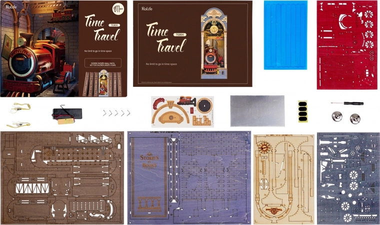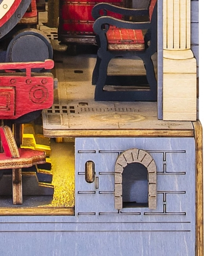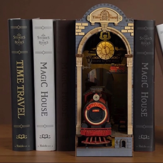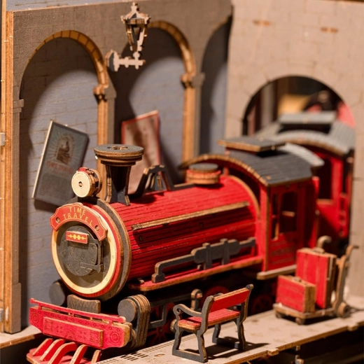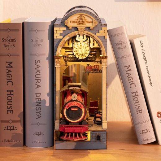 Deze doe-het-zelf set biedt de mogelijkheid om een eigen miniatuurmodel van een treinstation te maken, dat u tussen de boeken op de plank kunt plaatsen. Het bevat 258 onderdelen, waaronder details zoals het perron, bankjes, bagage en functionerende klok, wat het een geweldige decoratie maakt.