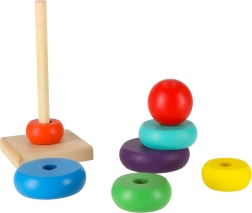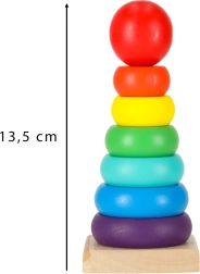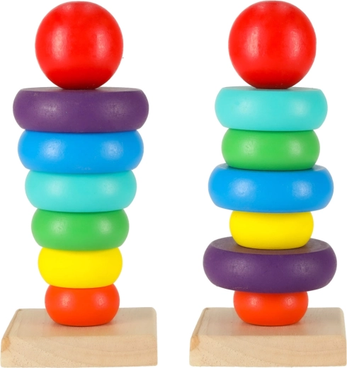 Houten speelgoed, bekend om hun eenvoudige ontwerp, stimuleren de creativiteit en intellectuele ontwikkeling van kinderen. De kleurvolle stapeltoren biedt niet alleen plezier, maar bevordert ook de ontwikkeling van logisch en creatief denken. Het plaatsen van ringen op de staaf verbetert motoriek en helpt bij het leren van kleuren.