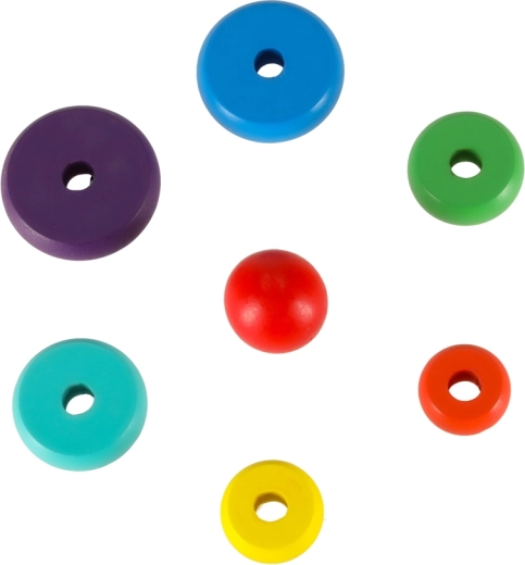Het plaatsen van ringen op de staaf bevordert de motorische vaardigheden en stimuleert sensorische integratie.