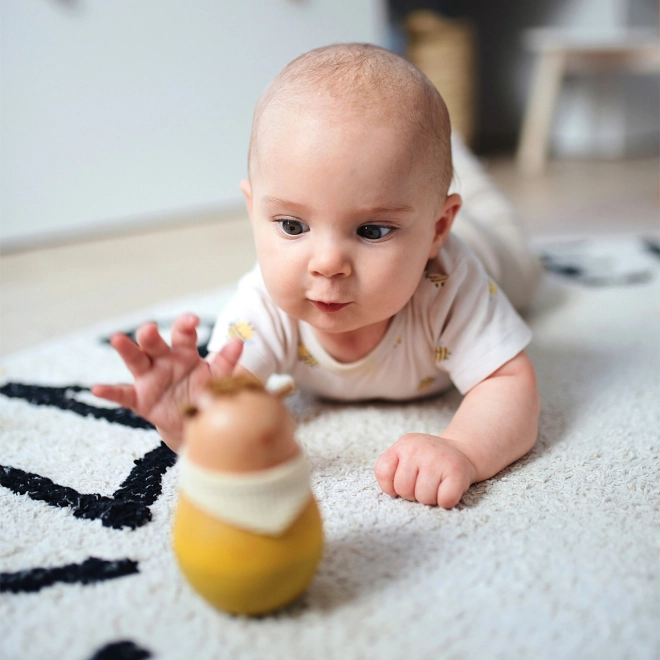 Interactief speelgoed met een belletje binnenin dat bij elke beweging het gehoor prikkelt. Het zelfoprichtende mechanisme ontwikkelt motorische vaardigheden.
