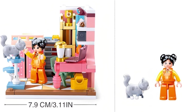 Bouw een gedetailleerde mini-slaapkamer uit de populaire Sluban Girls Dream-serie. Met 210 stukjes creëer je een originele scène met accessoires en 2 figuurtjes met draaibare en kantelbare delen. Dankzij de compatibiliteit met LEGO, Cobi en Mega Bloks breid je de wereld van je bouwset eenvoudig uit.