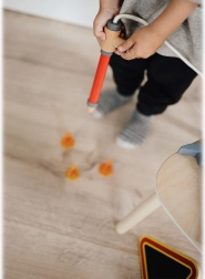 De set bevat een houten “slang” en een spuit, waarmee kinderen gemakkelijk elk vlammetje “blussen”. Stimuleert de fantasie en de ontwikkeling van de fijne motoriek.