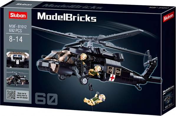 Stap in de wereld van actievolle luchtredding met de bouwset Sluban ModelBricks UH–60 Black Hawk. Dit gedetailleerde model van een reddingshelikopter met een rood kruis biedt een realistische cockpit, draaiende hoofd- en staartrotor, stabiele ski’s en accessoires voor evacuatie- en eerstehulpscenario’s. Met 692 stukjes en 4 beweeglijke minifiguren geniet je van doordacht bouwen en spannend spelen.