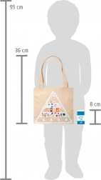 De stijlvolle en herbruikbare tas leert kinderen de principes van gezonde voeding en duurzaam gedrag tijdens het winkelen.