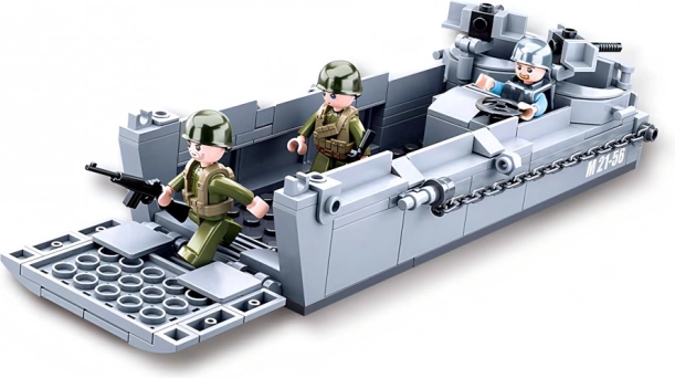 De Sluban Army landingsboot uit de Tweede Wereldoorlog is een gedetailleerde bouwset voor jonge én volwassen bouwers. Met realistische elementen, een functionele klep en een set accessoires creëer je eenvoudig authentieke militaire scènes. Dankzij de stevige ABS-kunststof weerstaat het model intensief spelen en herhaald bouwen.