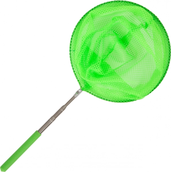 Het net met telescopische stok is handig voor het vangen van vlinders en andere insecten. De groene kleur is zelfs in het gras gemakkelijk herkenbaar.