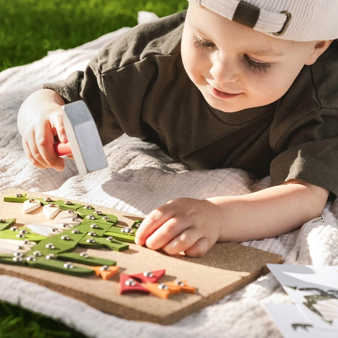 Dit hamerspel is ideaal voor kleine ontdekkers met fantasie. Het ontwikkelt motorische vaardigheden en stimuleert creativiteit bij kinderen. De set bevat stukjes in verschillende vormen en kleuren die eenvoudig in de kurken onderlegger kunnen worden gehamerd.