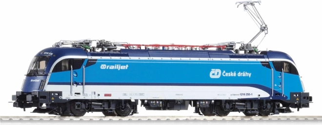 Deze nauwkeurige replica van de iconische locomotief RH 1216 TAURUS van Siemens in uitvoering van de Tsjechische Spoorwegen (tijdperk VI) blinkt uit door uitzonderlijk precieze detaillering – van het draaistel met fijn gemodelleerde remuitrusting tot de messcherpe bedrukking met contrasterende pictogrammen. De aerodynamische kap is voorzien van subtiel geplaatste handgrepen, treden en een realistisch dak met een viertal pantografen.